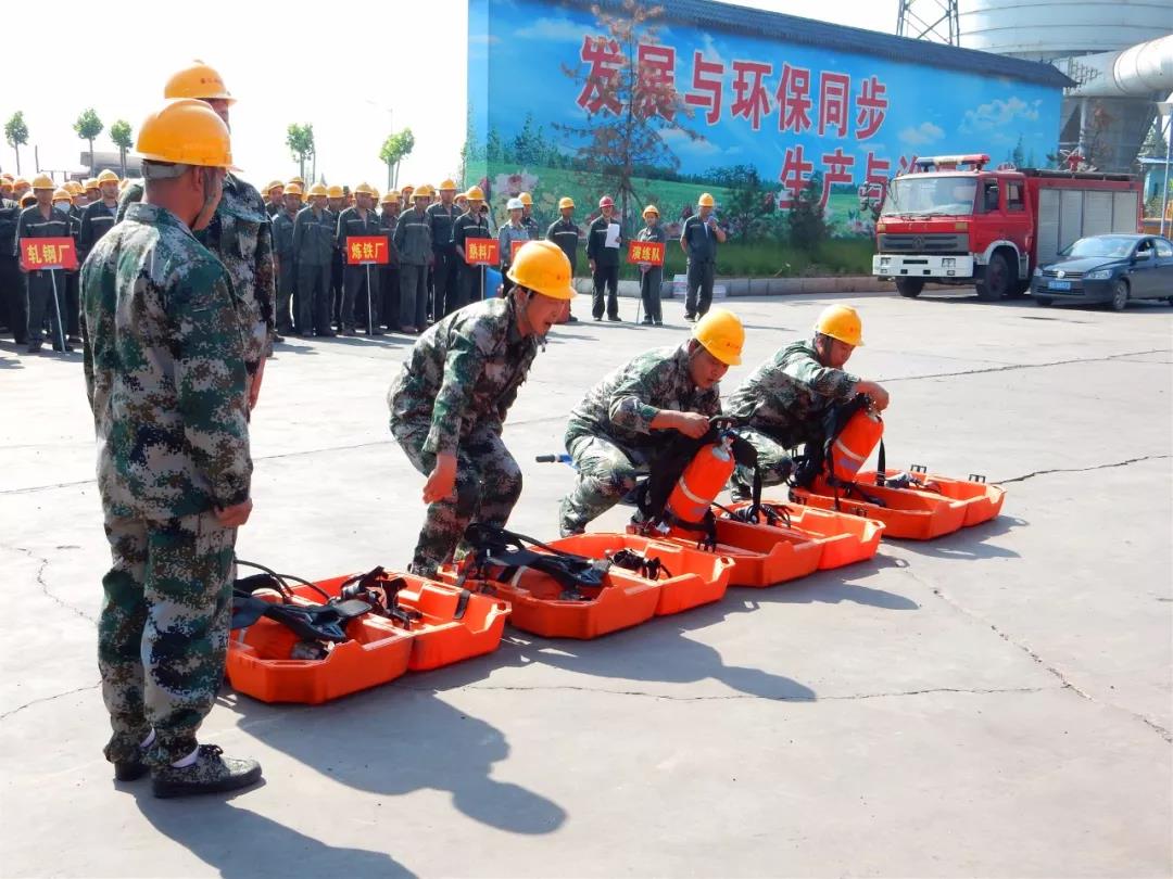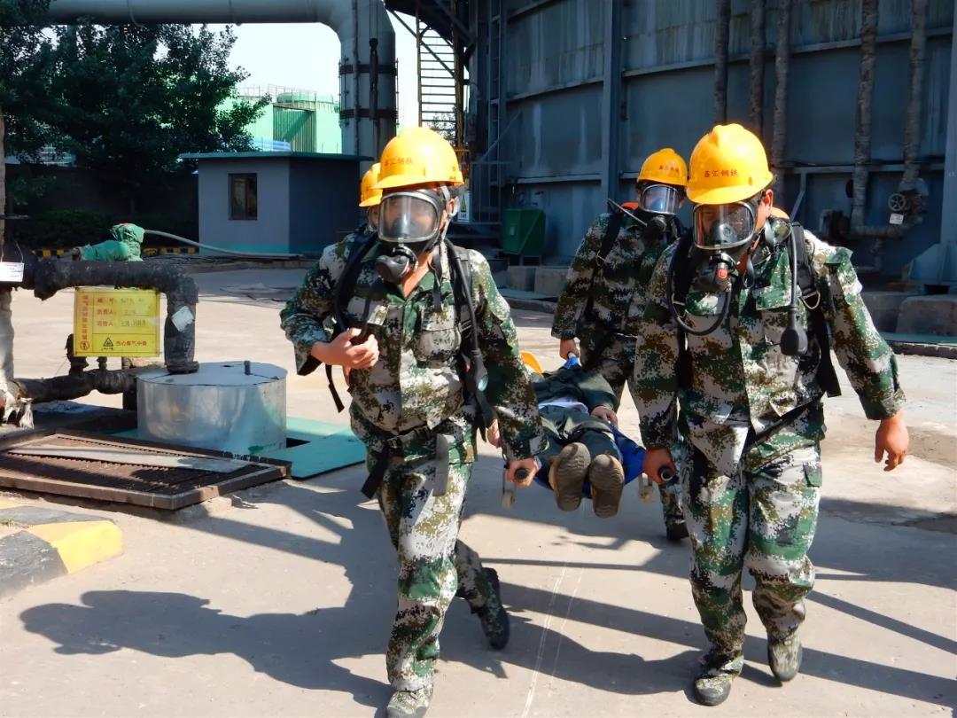 今年6月是全國第18個安全生產月,主題為“防風險、除隱患、遏事故”。鑫匯公司積極響應國家號召,以安全生產月活動為契機,以煤氣泄漏造成職工煤氣中毒為模型設計演練方案,并于6月14日上午8:30在煤氣柜順利演練。副總經理韓平安、任正平,生產部王現朝,煉鋼廠陳剛,安環部杜曉五,保衛部白文軍及各廠員工100余人參加,并特邀午汲鎮安委會的領導觀摩指導。此次演練由生產副總任正平擔任應急救援總指揮,安環部部長杜曉五擔任現場演練總指揮。