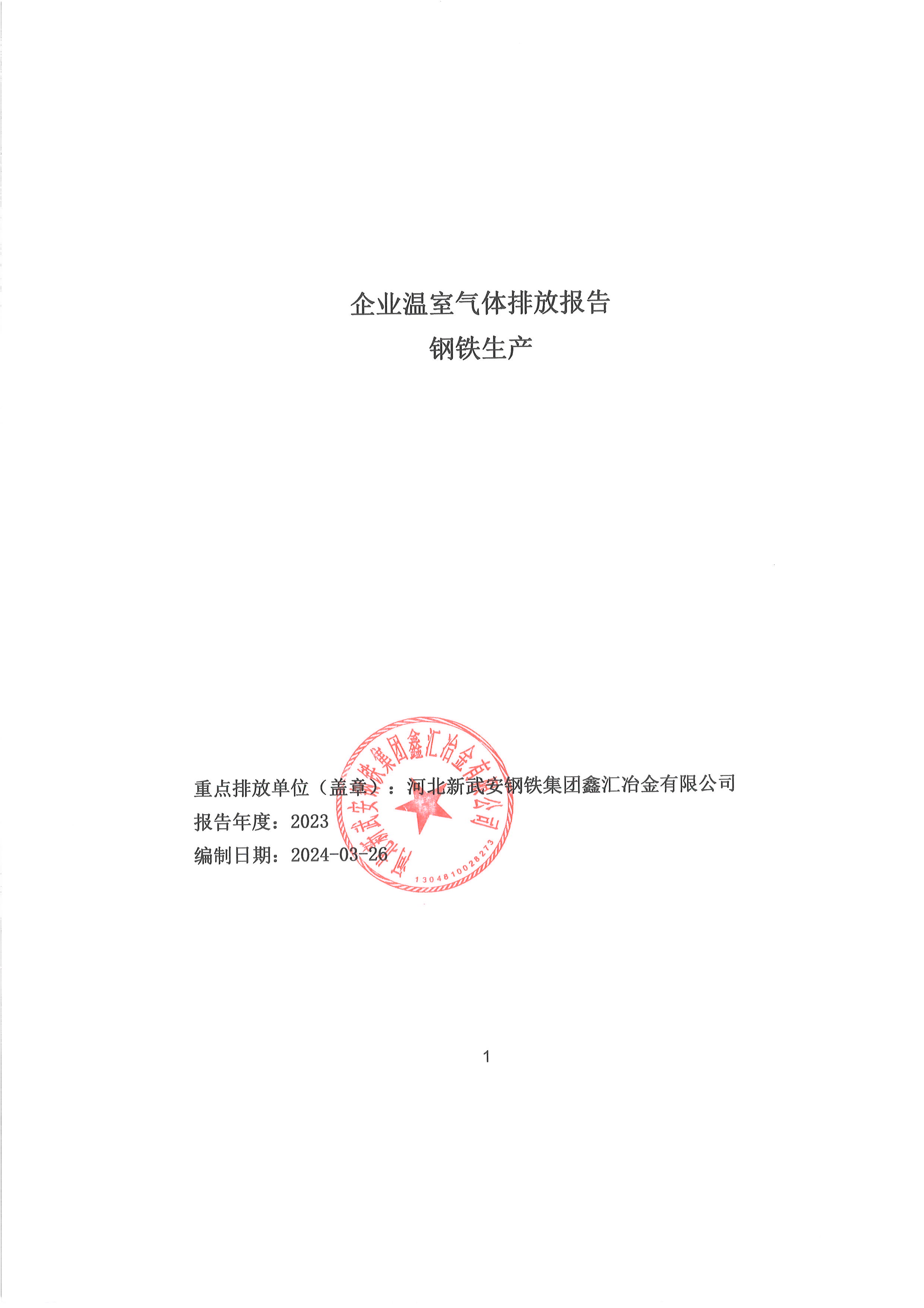 2023年河北新武安鋼鐵集團(tuán)鑫匯冶金有限公司碳排放報(bào)告